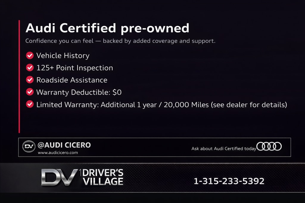 As an Audi Certified pre-owned vehicle, this A6 has undergone a rigorous 125+ point inspection and comes with a comprehensive warranty and roadside assistance program. You can drive with confidence, knowing that this vehicle has been meticulously maintained and is backed by Audi's commitment to quality.